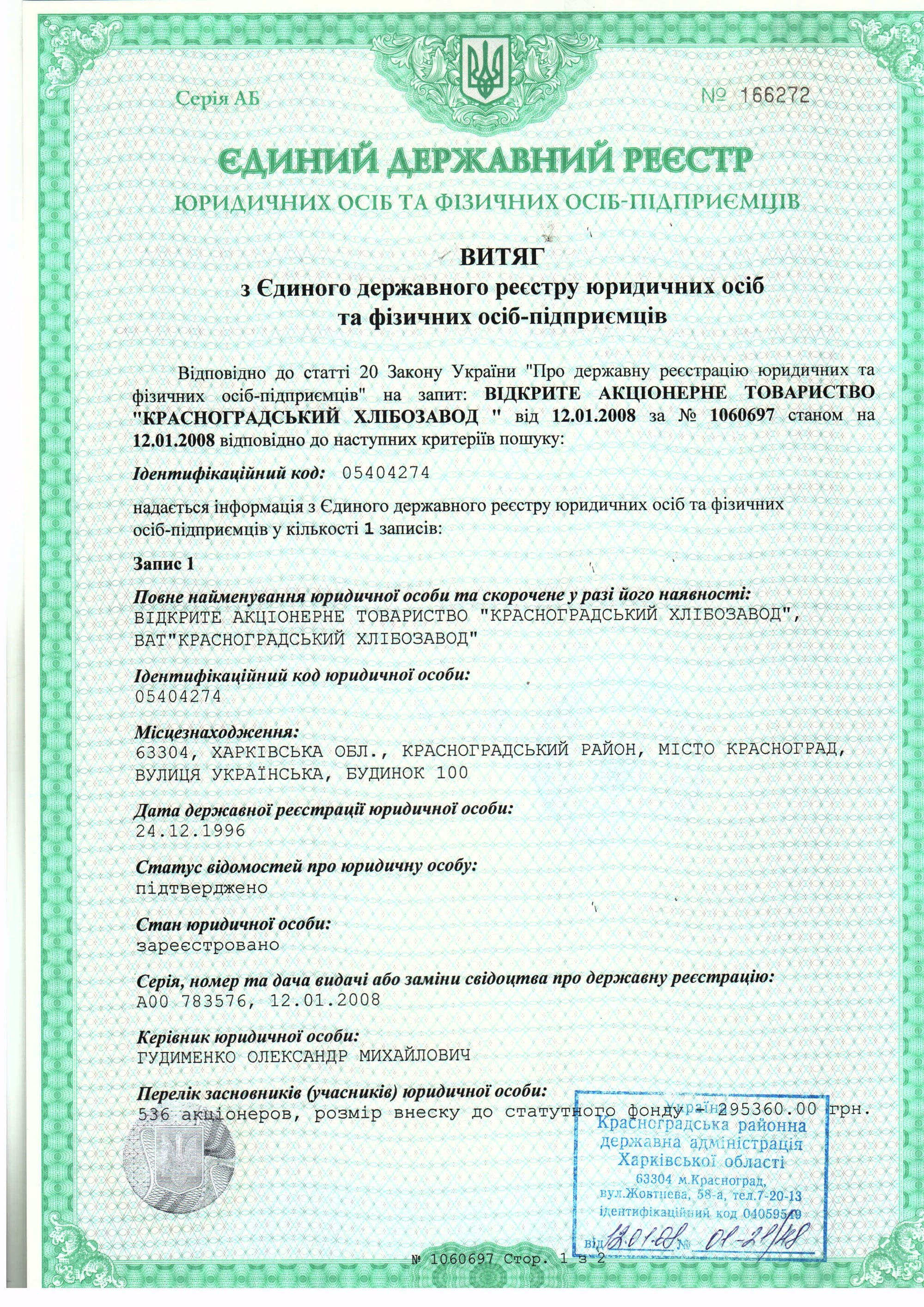 Вiдкрите акцiонерне товариство "Красноградський хлiбозавод"